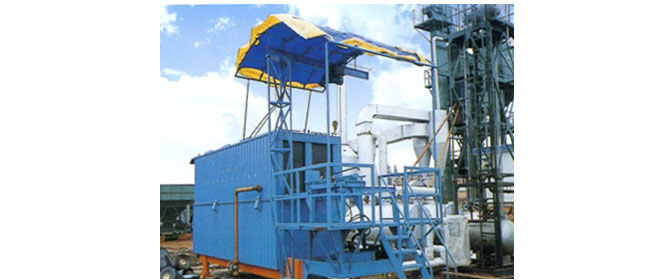 我公司研究設計了這種新型的脫桶溶化設備。該設備結構合理,操作方便簡單,脫桶溶化快,箱內上部在兩道瀝青桶通道,四周設導熱油加熱排管,液壓推進器逐個將桶送進,瀝青受熱溶化脫桶。下部導熱油加熱系統繼續加熱溶化瀝青,然后用泵抽出發運使用。